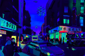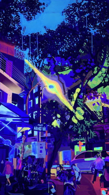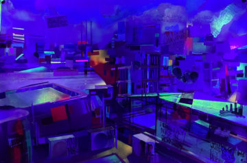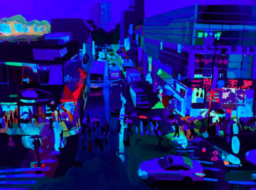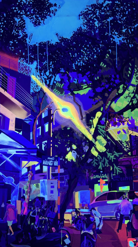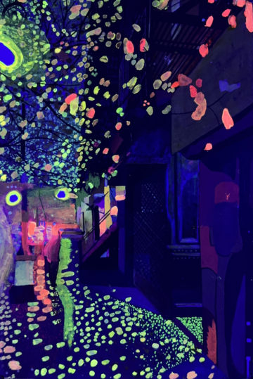 Acrylic gouache, fluorescent paint, glow-in-the-dark paint, colored pencil • 107cm x 140cm • Aug 2021