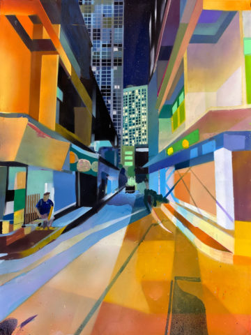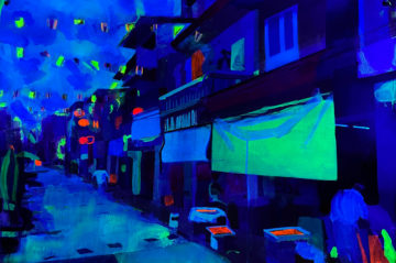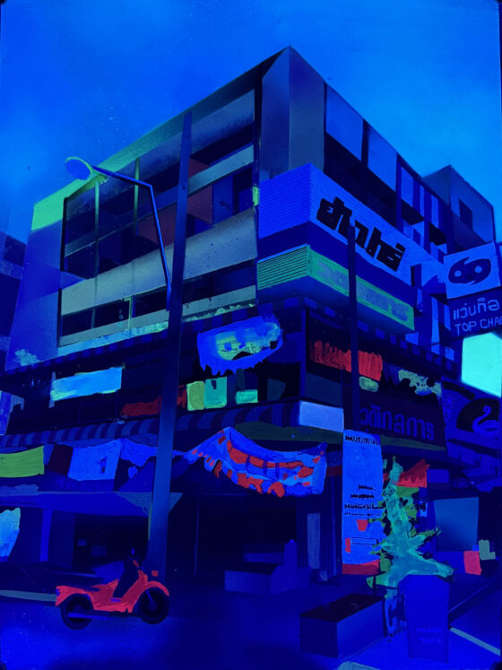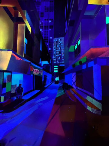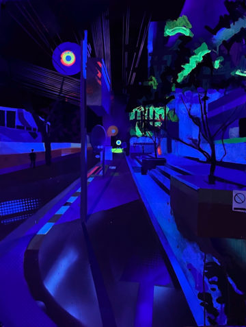 Acrylic gouache, fluorescent paint, glow-in-the-dark paint • 81cm x 46cm • Apr 2024