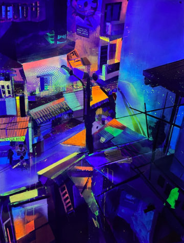 Acrylic gouache, fluorescent paint, glow-in-the-dark paint • 107cm x 71cm • Feb 2021