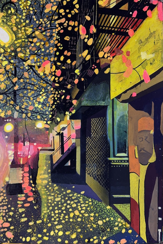 Acrylic gouache, collage, glow-in-the-dark paint • 61cm x 34cm • Jan 2025