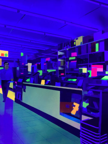 Acrylic gouache, fluorescent paint, glow-in-the-dark paint • 114cm x 203cm • Sep 2025