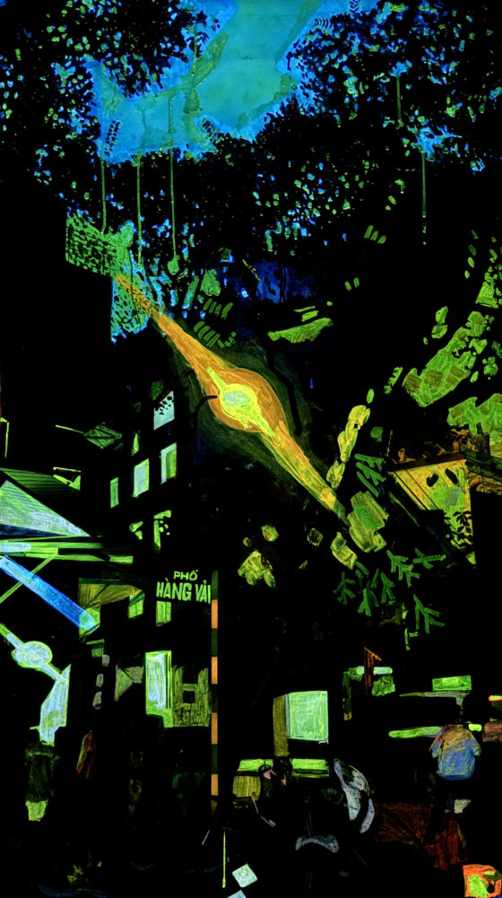 Acrylic gouache, collage, glow-in-the-dark paint • 80cm x 107cm • Aug 2019