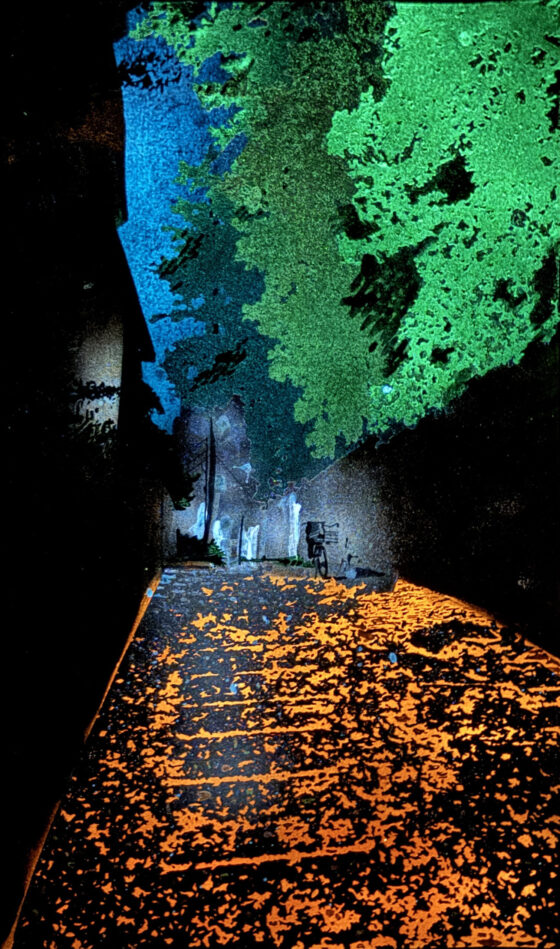 Acrylic gouache, glow in the dark paint • 30cm x 46cm • Nov 2023