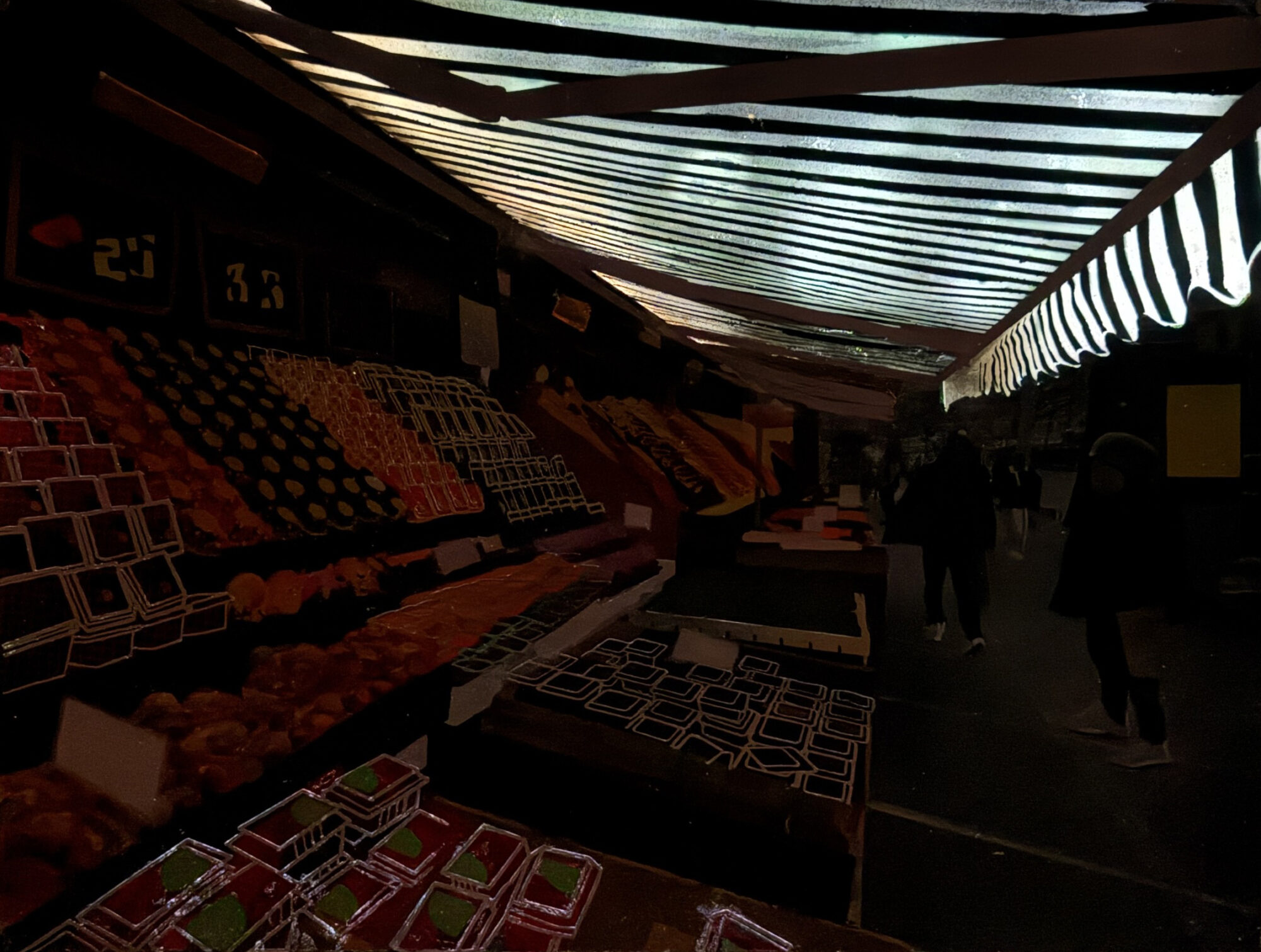 Acrylic gouache, fluorescent paint, glow-in-the-dark paint • 114cm x 203cm • Sep 2025