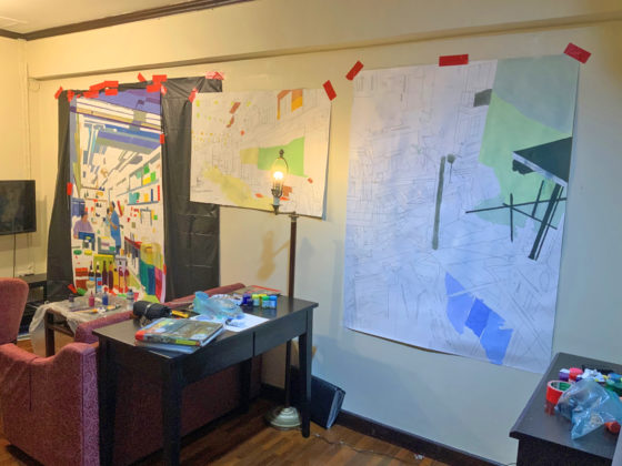 Acrylic gouache, fluorescent paint, glow-in-the-dark paint, colored pencil  •  107cm x 140cm  •  Aug 2021