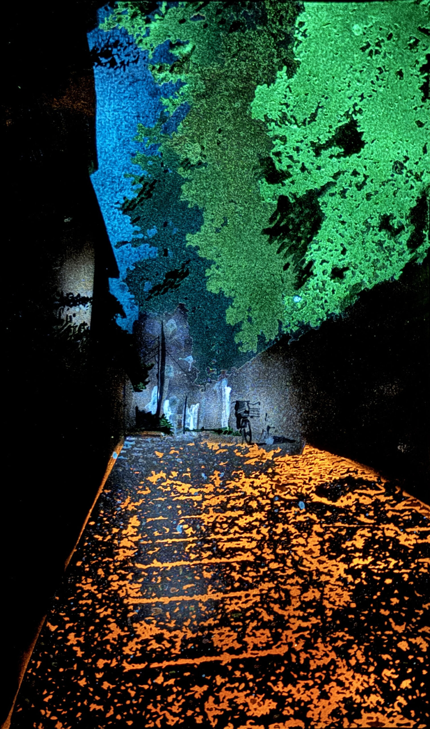 Acrylic gouache, fluorescent paint, glow-in-the-dark paint, colored pencil • 81cm x 61cm • Jun 2024